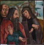 Osztrák vagy délnémet műhely (?) Többalakos jelenet töredéke, a hátoldalon Vizitáció. Szárnyasoltár mozgószárnyának részlete |