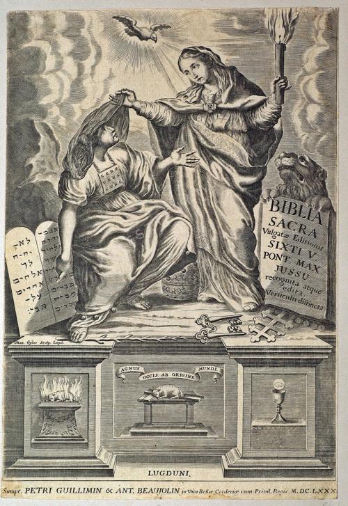 Az Ó- és az Újszövetség allegorikus alakja egy oltárasztalon