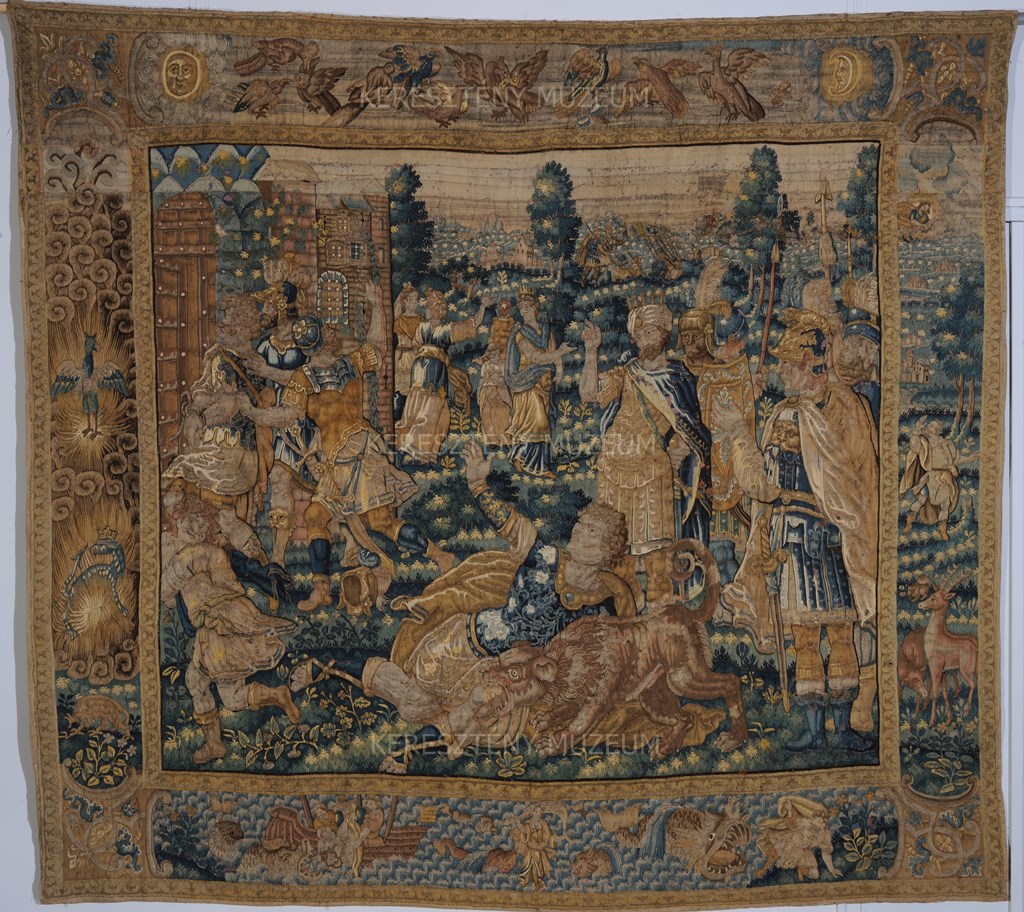 Dr. Csernyánszky Mária szerint egy ószövetségi jelenetet ábrázol a kárpit, mely a Királyok első könyvében (20, 35-37) olvasható. (feljegyzés 1984-ből a múzeum iratai között)