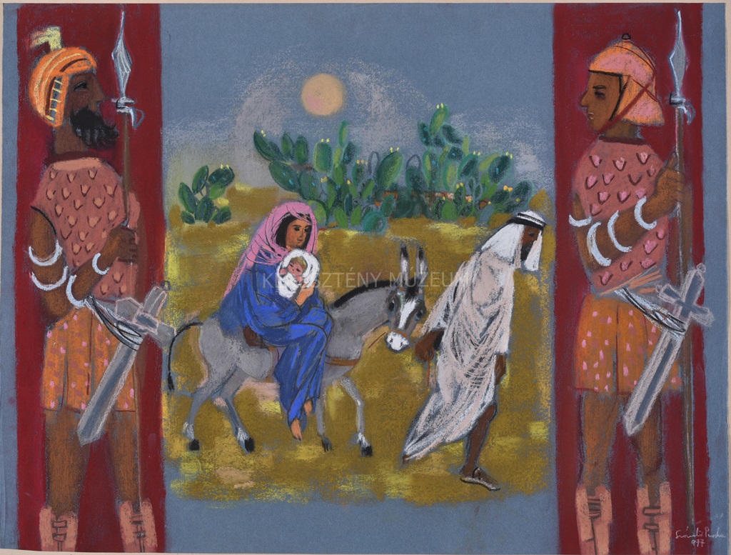 Szamárra ültette hát József az anyát és gyermekét s maga előttük ment, száron vezetve a szelíd jószágot, hogy óvatosan lépjen s lába kőbe ne botoljék a drága teherrel. És ideje volt a menekülésnek, mert Heródes megöletett minden kisgyermeket a ma született csecsemőtől, a kétesztendősig. Nagy siralommal siratták az anyák gyermekeiket Júdea földjén.