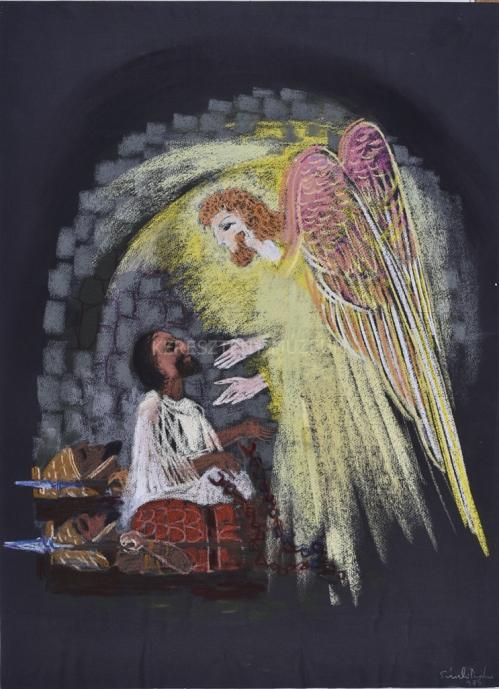 És mély álmot bocsátott az őrizőkre és lehullottak Péter láncai s a nehéz vasajtó magától kitárult előtte.