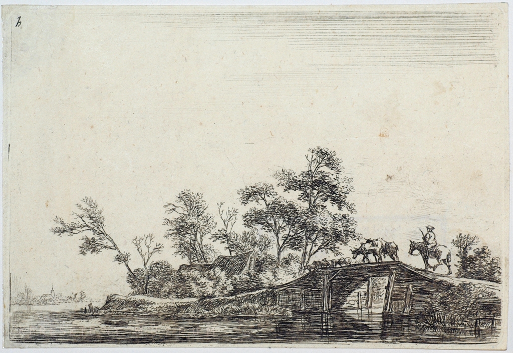 Nyáj és lovas a hídon