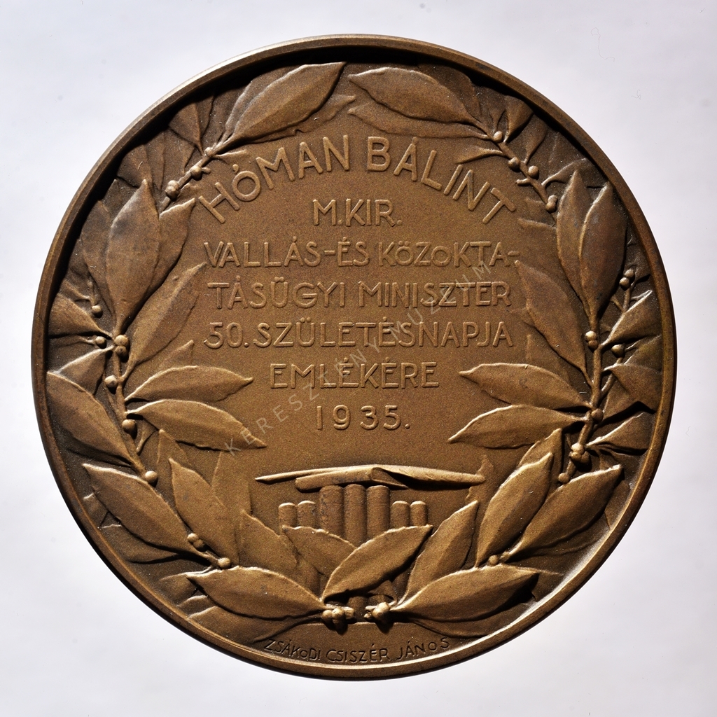 HÓMAN BÁLINT / M.KIR. / VALLÁS-ÉS KÖZOKTA- / TÁSÜGYI MINISZTER / 50.SZÜLETÉSNAPJA / EMLÉKÉRE / 1935."