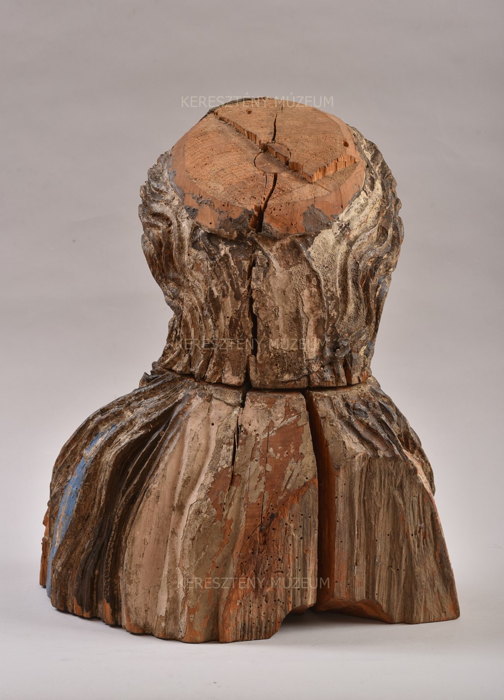 Az eredetileg feltehetőleg egészalakos szobrot valószínűleg az első világháború alatt fűrészelték szét több darabra, a fennmaradt mellrészt és fejet - ma is jól látható módon - a nyaknál illesztették össze. Színezése erősen kopott, a fa hordozóra, az alapozás alá ragasztott vászon több helyen látszik. A szobrot a Szépművészeti Múzeumba jutott párdarabjával együtt (ltsz. 7176) egyes kutatók Kassai Jakab műhelyével hozzák összefüggésbe, mások szerint azonban Hans Multscher műhelyének hatása alatt készült.