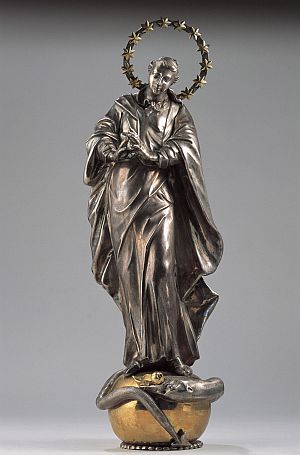 A XX. századi Mária ábrázolások között –eltekintve a lourdes-i tradíció tovább élésétől- alig találunk Szeplőtelen Fogantatást. Csak kevesen választják a kegyelem, a bűn, a gonosz feletti győzelem elvont tartalmának megfogalmazására ezt a régi ikonográfiai típust.