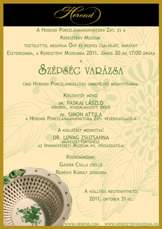 Szépség varázsa Válogatás a Herendi Porcelánmanufaktúra gyűjteményéből
